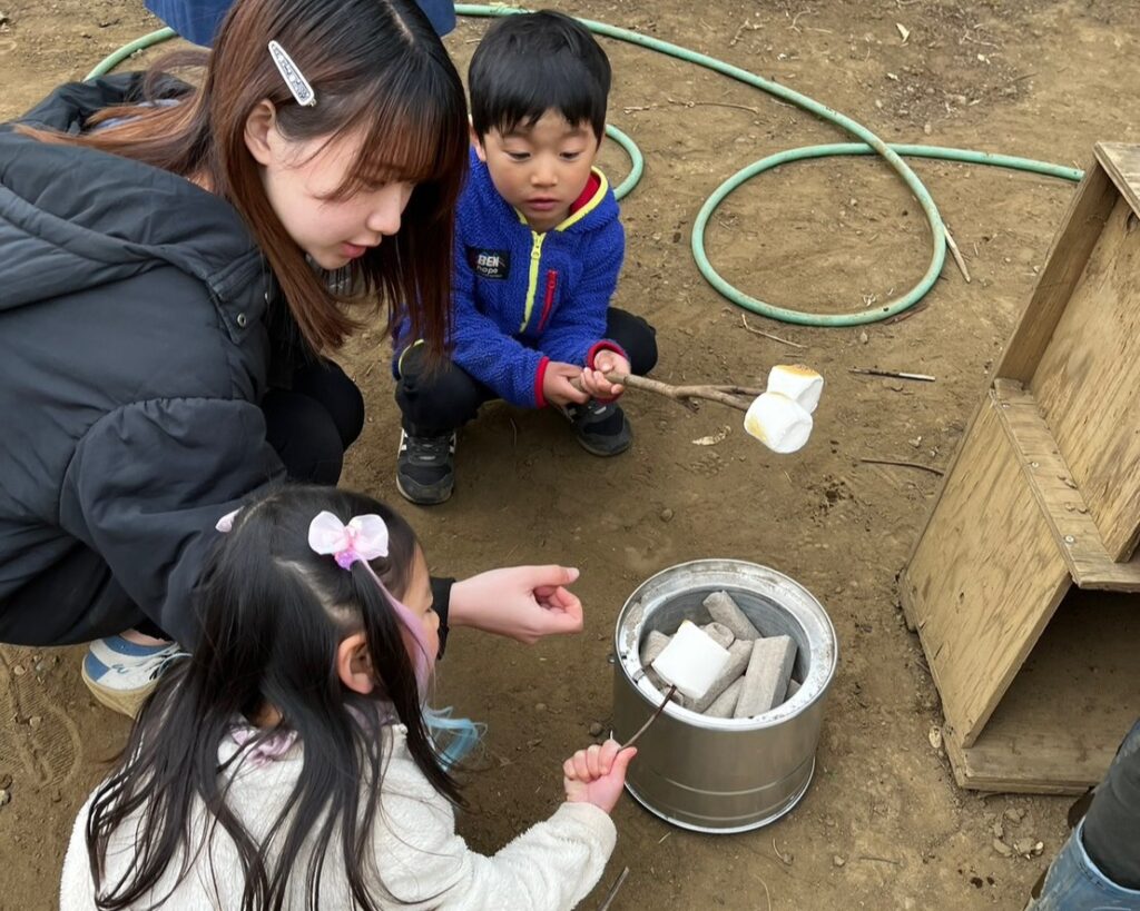 炭火の道具や火おこしの道具は、キャンプが趣味な来園者のパパさんがお貸しくださっています✨