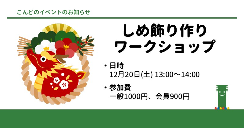 子育て支援講座 稲藁や自然の素材を使って、自分だけのしめ飾りを作りましょう。少し力を使う作業ですので、お子さんは、ぜひおとなの方と一緒にご参加ください!(屋外... -