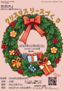 | 参加費 | 一般1000円、会員900円 ※参加者1組につきリース1つで準備しています。 |