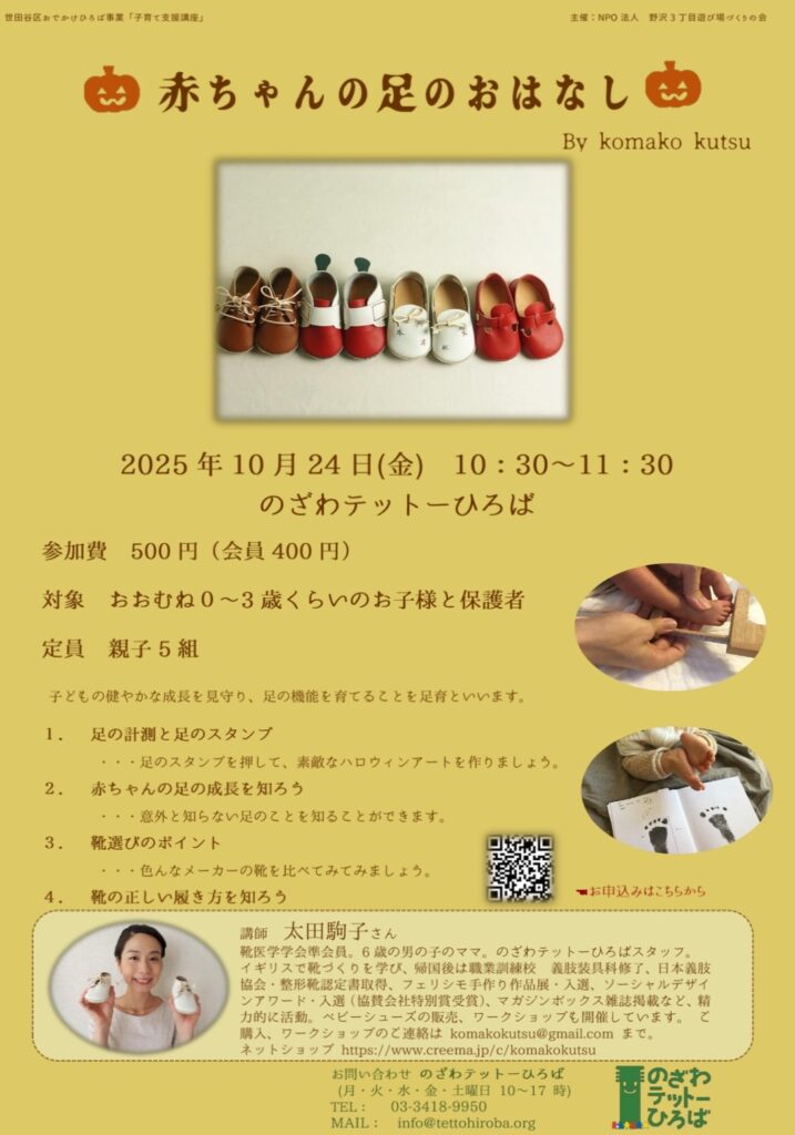 お子さんの足の計測や足のスタンプを押したり、靴選びのポイントについて学びます。