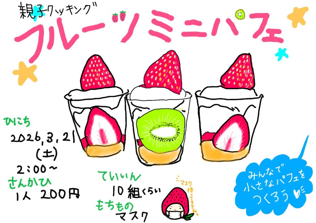 - 参加者の皆様は、調理・食事前の手洗いやアルコール消毒、マスクの着用(2歳以上)など、基本的な感染症対策にご協力をお願いします。